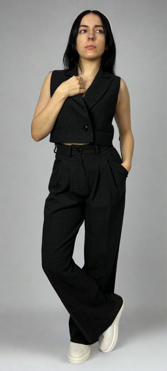 "Isabella" Charcoal High-Waisted Wool Trousers