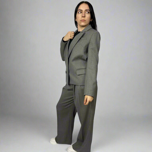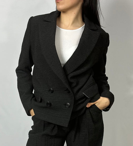 "Isabella" Charcoal Double-Breasted Wool Blazer