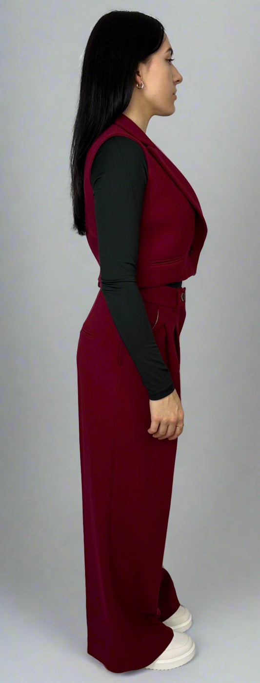 "Scarlett" Burgundy High-Waisted Wool Trousers