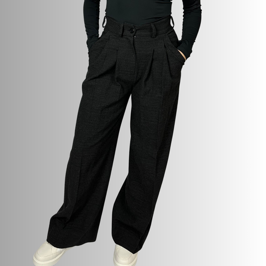 "Isabella" Charcoal High-Waisted Wool Trousers